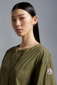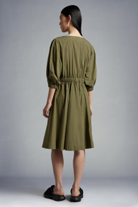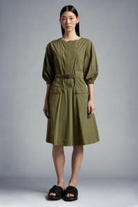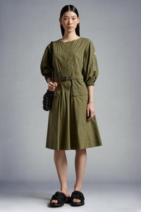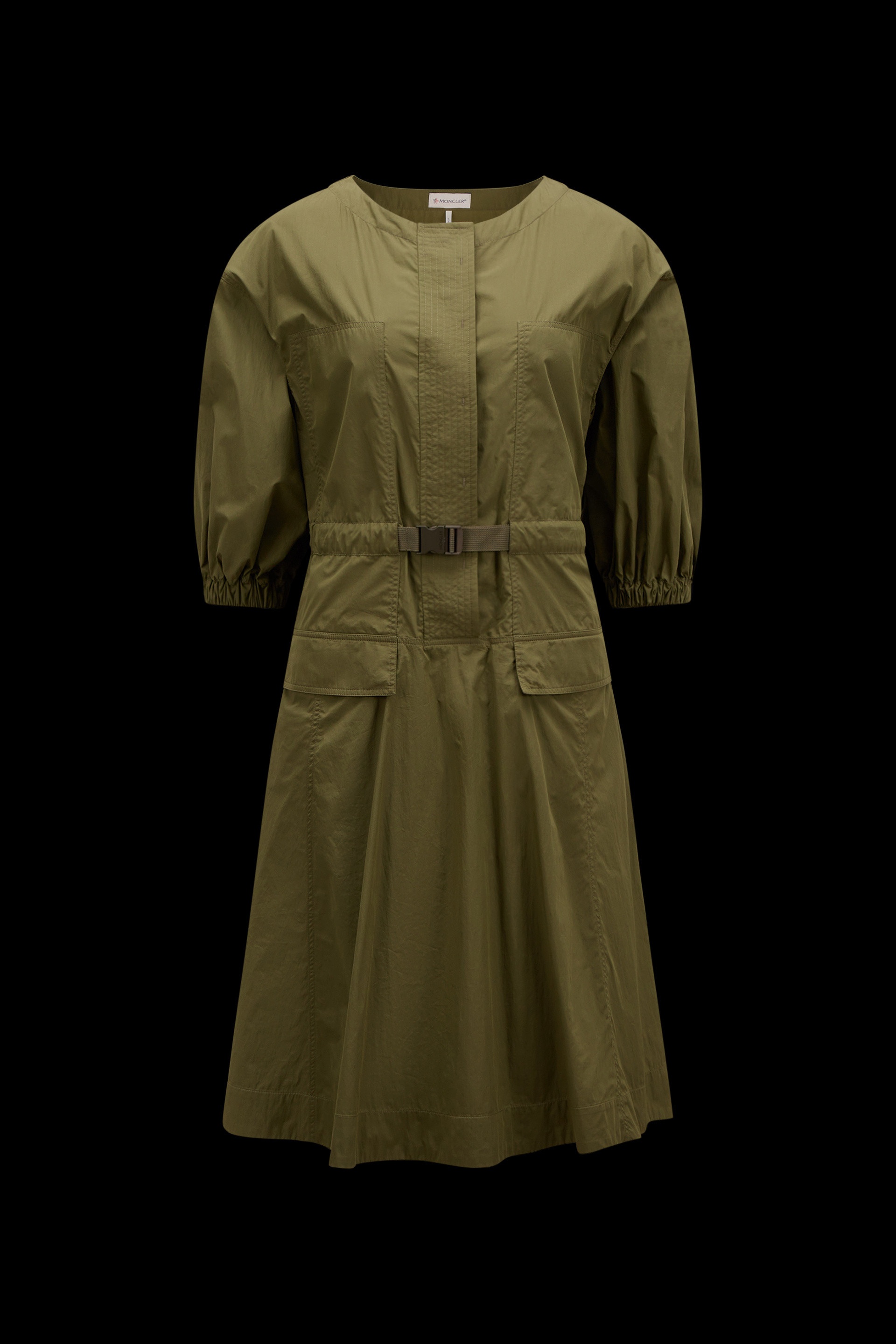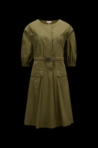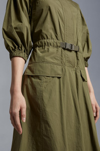 A wardrobe staple for the warmer months, this lightweight women's dress is crafted from crisp cotton poplin. Safari meets the city in this belted midi dress. Featured in earthy hues, the dress is crafted from crisp cotton poplin, making it ideal for the warmer months. - Crafted from lightweight cotton poplin and nylon - Crew neck - Snap button closure - Nylon belt with a metal buckle SIZE AND FIT - The model is wearing a size 40 and is 180 cm tall - The model measures: bust 84 cm, waist 61 cm, hips 89 cm COMPOSITION AND CARE BASE FABRIC: 66% Cotton, 34% Polyamide / Nylon Wash max 30°C - Mild process; Do not bleach; Do not tumble dry; Ironing maximum temperature 110°C - without steam; Dry cleaning in tetrachloroethene or with hydrocarbons - mild process; Professional wet cleaning - mild process; Flat dry in the shade; Wash separately; It is advisable to wash and iron the garment on reverse.; PROTECT TRIMS WHILE WASHING Product code I10932G00015596OT81N Made in Romania