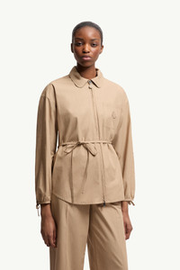Guided by the ease of travel and the softness of natural landscapes, this women's shirt is cut from light poplin that drapes effortlessly. A sophisticated approach to warm weather layering, this shirt jacket is crafted from crisp cotton poplin. Adjustable elements refine the silhouette, while functional details ensure everyday versatility, from city routines to weekend escapes. DETAILS - Crafted from poplin - Shirt collar - Font zipper closure with gros grain puller - Adjustable drawstring at the waist and cuffs - Chest patch pocket - Gros grain Logo patch SIZE AND FIT - The model is wearing a size 40 and is 178 cm tall COMPOSITION EXTERIOR: 100% Cotton; YOKE LINING: 100% Cotton Product code L10932F00021597LQ20J Made in Romania