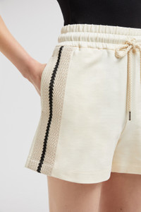 Channeling the collection's feminine aesthetic, these cotton fleece shorts for women are adorned with crochet accents. Adding a delicate twist to a casual classic, this pair of shorts features a stripey crochet trim. The cotton bottoms can be worn with a matching crew neck, reimagining a sweatsuit with a summery feel. DETAILS - Crafted from cotton fleece - Waistband with drawstring fastening - Side pockets - Crochet trim along the legs SIZE AND FIT - The model is wearing a size XS and is 179 cm tall COMPOSITION BASE FABRIC: 100% Cotton Product code K10938H0001789A1K034 Made in Turkey