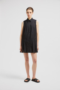 A feminine interpretation of a shirt dress, this design for women features a pleated skirt with silk organza accents. A breezy summer design, this shirt dress is crafted from crisp cotton poplin. The piece boasts a pleated skirt with sheer silk panels, adding a romantic twist. Available in a timeless color palette, the style is ideal for elegant monochrome looks. DETAILS - Crafted from organic cotton poplin - Collar - Sleeveless - Snap button closure - Pleated skirt with silk organza panels - Logo patch SIZE AND FIT - The model is wearing a size 40 and is 179 cm tall COMPOSITION EXTERIOR: 100% Cotton; LINING: 100% Cotton; 1 MATERIAL: 100% Silk Product code K10932G00011597LQ999 Made in Romania