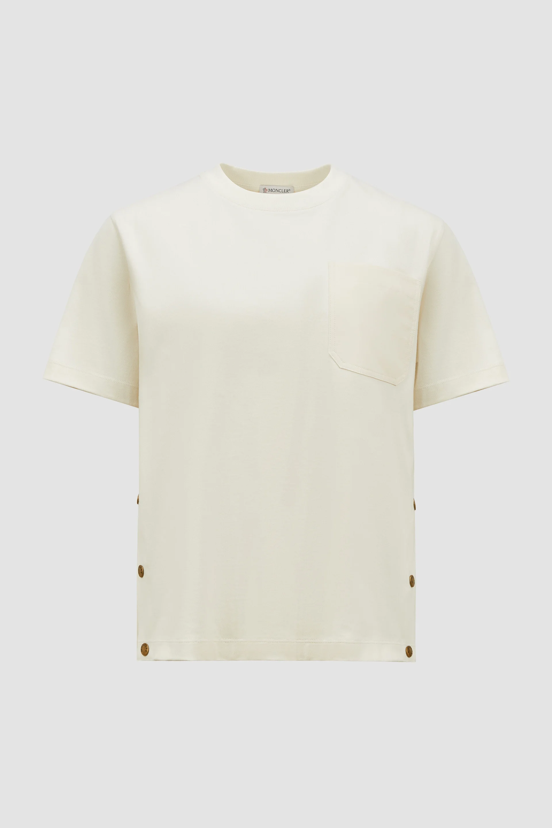 A contemporary take on a daily essential, this cotton t-shirt for women features adjustable slits on each side. A versatile design for balmy seasons, this t-shirt can be opened at each side with snap buttons. The classic crew neck is further enhanced with a patch pocket on the chest. DETAILS - Crafted from cotton jersey - Crew neck - Short sleeves - Side snap button closure - Chest pocket SIZE AND FIT - The model is wearing a size XS and is 178 cm tall - Loose fit COMPOSITION BASE FABRIC: 100% Cotton; 1 MATERIAL: 100% Cotton; Ribs: 100% Cotton Product code K10938C0002089A4U050 Made in Turkey