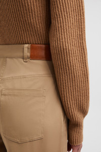 Transcending seasons, these gabardine pants from the women's collection are an everyday essential for any time of year. A wardrobe staple, this pair of gabardine pants feature a high-waisted, straight leg silhouette. The slacks pair well with crisp shirts, plush knits or more casual jersey tops. DETAILS - Crafted from cotton gabardine - Zipper and button closure - Patch pockets SIZE AND FIT - The model is wearing a size 40 and is 177 cm tall - The model measures: bust 80 cm, waist 62 cm, hips 89 cm COMPOSITION BASE FABRIC: 98% Cotton, 2% Elastane / Spandex Product code J20932A000165980322B Made in Italy