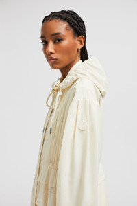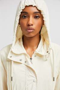 Embodying everyday elegance, the Coupiac parka for women pairs delicate pleats with a feminine silhouette. With crisp fabrics and a soft, fluid shape, the Coupiac parka captures a sense of lightness. The hooded coat is crafted from water-repellent nylon with a sophisticated matte finish. The design features pleated accents and a cinched waistline. DETAILS - Crafted from coated nylon poplin - Recycled polyester lining - Adjustable hood - Zipper and snap button closure - Patch pockets with snap button closure - Waistband with drawstring fastening - Adjustable cuffs - Logo patch SIZE AND FIT - The model is wearing a size 0 and is 178 cm tall - •Regular fit COMPOSITION EXTERIOR: 100% Polyamide / Nylon; LINING: 100% Polyester; HOOD LINING: 100% Polyamide / Nylon Product code K10931C000175986N050 Made in Hungary