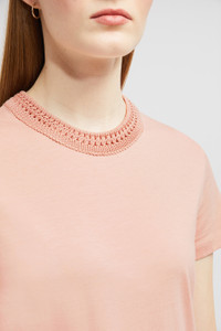 Imbuing a daily essential with a feminine feel, this t-shirt for women features a delicate crochet trim. An essential layer for any season, this t-shirt takes on a summery feel with a crochet neckline. The short sleeve crew neck is crafted from the softest cotton jersey. DETAILS - Crafted from cotton jersey - Crochet crew neck - Short sleeves SIZE AND FIT - The model is wearing a size XS and is 179 cm tall - Regular fit COMPOSITION BASE FABRIC: 100% Cotton; Ribs: 100% Cotton Product code K10938C0004389ADC511 Made in Turkey