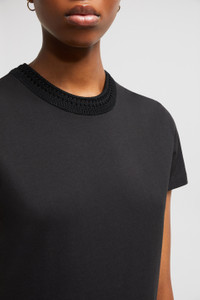 Imbuing a daily essential with a feminine feel, this t-shirt for women features a delicate crochet trim. An essential layer for any season, this t-shirt takes on a summery feel with a crochet neckline. The short sleeve crew neck is crafted from the softest cotton jersey. DETAILS - Crafted from cotton jersey - Crochet crew neck - Short sleeves SIZE AND FIT - The model is wearing a size XS and is 178 cm tall - Regular fit COMPOSITION BASE FABRIC: 100% Cotton; Ribs: 100% Cotton Product code K10938C0004389ADC999 Made in Turkey