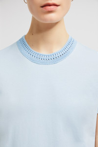 Imbuing a daily essential with a feminine feel, this t-shirt for women features a delicate crochet trim. An essential layer for any season, this t-shirt takes on a summery feel with a crochet neckline. The short sleeve crew neck is crafted from the softest cotton jersey. DETAILS - Crafted from cotton jersey - Crochet crew neck - Short sleeves SIZE AND FIT - The model is wearing a size XS and is 179 cm tall - Regular fit COMPOSITION BASE FABRIC: 100% Cotton; Ribs: 100% Cotton Product code K10938C0004389ADC70N Made in Turkey