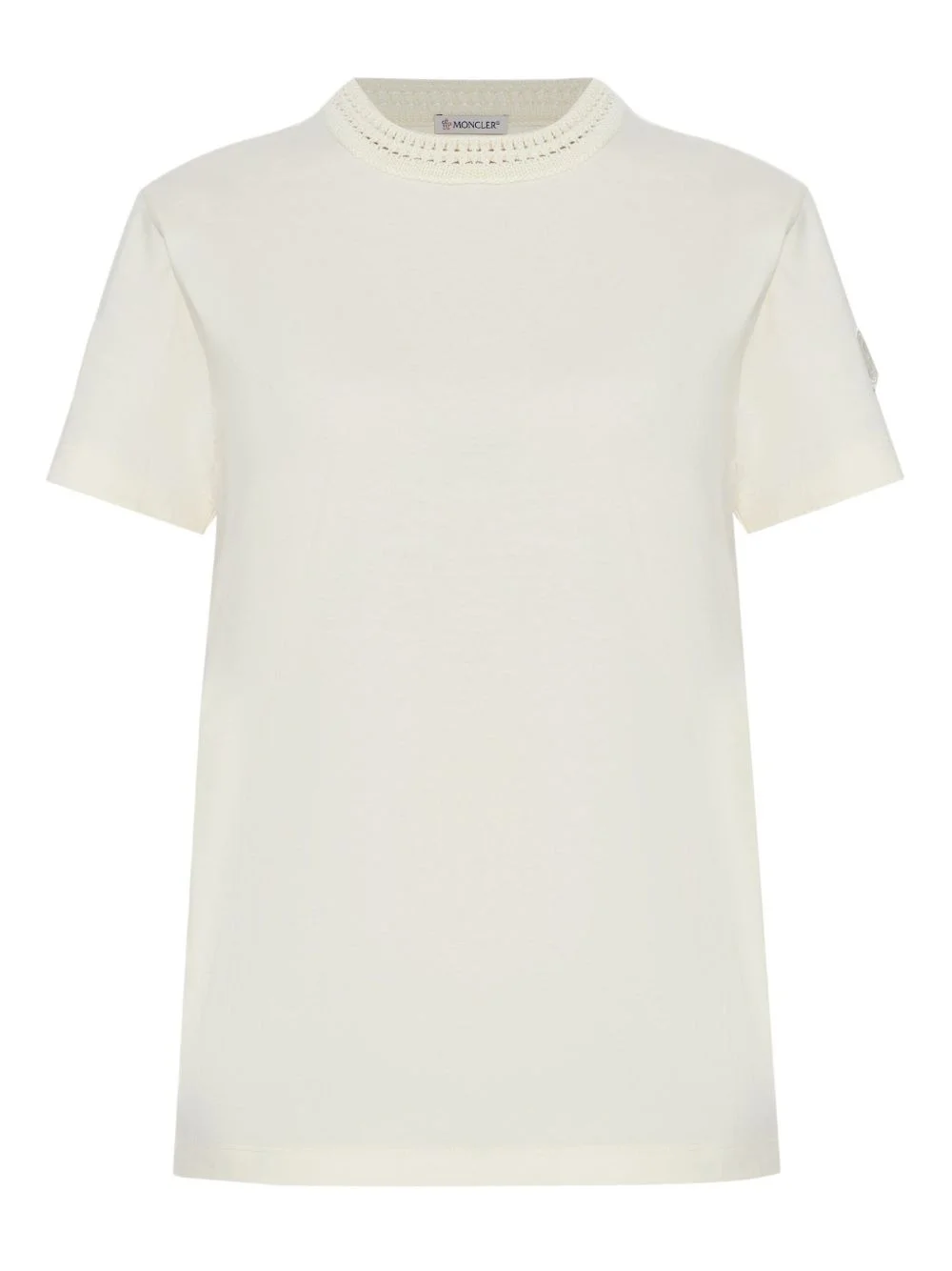 crochet-detail cotton T-shirt Highlights - White - Applique logo - Round neck - Short sleeves - Straight hem Imported Composition Cotton 100% Washing instructions Machine Wash