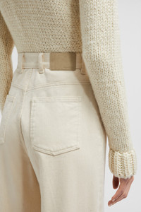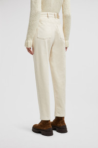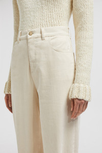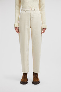 A timeless staple for any woman's wardrobe, this pair of denim jeans encapsulates everyday elegance. A classic style, these jeans are crafted from cotton with a luxurious velvet effect. Easy to dress up or down, the pants come in a high-waisted silhouette with a relaxed fit. DETAILS - Crafted from denim - Zipper and button closure - Slit pockets SIZE AND FIT - The model is wearing a size 40 and is 177 cm tall - The model measures: bust 80 cm, waist 62 cm, hips 89 cm COMPOSITION BASE FABRIC: 100% Cotton; OUTER APPLICATION: 100% Viscose / Rayon Product code J20932A00013597Z6034 Made in Italy