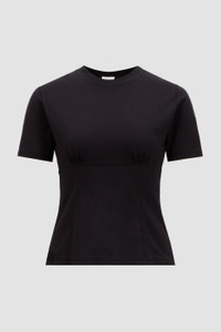 Crafted from cotton, this women's t-shirt presents a contemporary take on brand DNA with a crystal logo. An elevated essential, this short sleeve t-shirt is embellished with a delicate crystal-encrusted logo. The top is featured in a crew neck silhouette, crafted from the softest cotton jersey. DETAILS - Crafted from cotton jersey - Crew neck - Short sleeves - Crystal-encrusted logo SIZE AND FIT - The model is wearing a size XS and is 180 cm tall - The model measures: bust 81 cm, waist 60 cm, hips 87 cm - Regular fit COMPOSITION BASE FABRIC: 100% Cotton; Ribs: 100% Cotton Product code J20938C0002089AIJ999 Made in Turkey