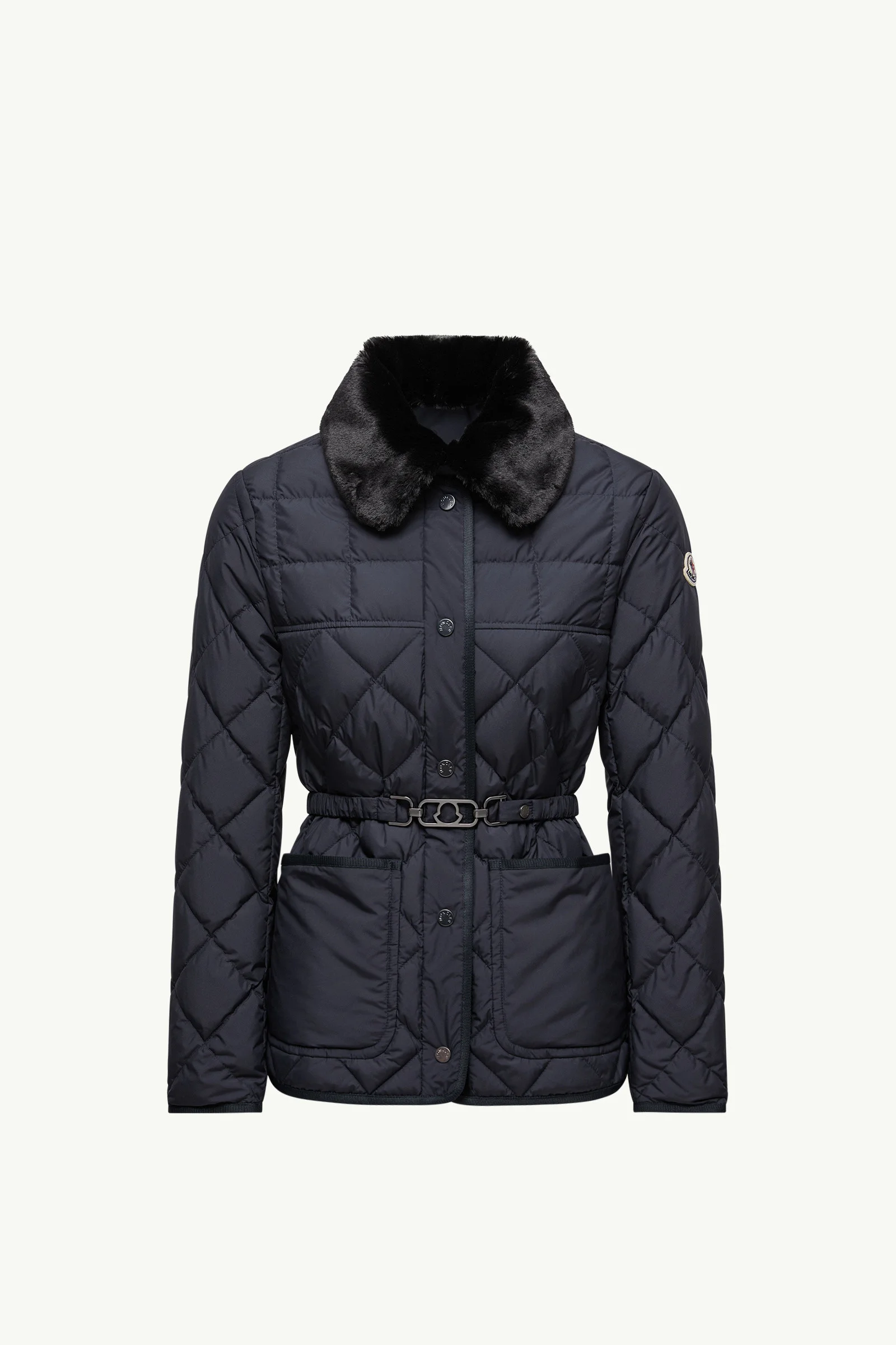 A design that exudes confidence, the Cygne short down jacket for women boasts a plush, detachable collar. Designed for sophisticated women with a timeless style, the Cygne down jacket is easily layered over workwear and weekend leisure looks. Crafted from recycled polyester, the short puffer boasts geometric quilting and a nipped-in, belted silhouette. The lightweight style is finished with a detachable faux fur collar. DETAILS - Crafted from recycled polyester - Recycled longue saison lining - Velvet trim - Down-filled - Detachable faux fur collar - Snap button closure - Side vent tabs with snap button closure - Patch pockets - Elasticized belt - Logo patch SIZE AND FIT - Regular fit - Length (collar to hem): 65 cm COMPOSITION EXTERIOR: 100% Polyester; LINING: 100% Polyamide / Nylon; COLLAR: 100% Polyester; PADDING: 90% Down, 10% Feather; DETAILS PADDING: 83% Polyester, 17% Polyethylene; 1 MATERIAL: 100% Cotton Product code K20931A0015654A81778 Made in Romania