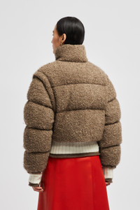 Easily worn as a short down jacket or vest, the Cytinelle puffer for women is characterized by detachable sleeves. Crafted from tweed, the Cytinelle down jacket reimagines classic elegance with a sporty twist. The short warmer features detachable sleeves that allow it to be worn as a puffer jacket or vest. Featured in an oversized silhouette, the 2-in-1 style moves effortlessly between temperatures and times of the day. DETAILS - Crafted from tweed - Longue saison lining - Down-filled - Detachable sleeves - Zipper and snap button closure - Zipped pockets - Elastic cuffs - Hem with drawstring fastening - Double jacquard logo patch SIZE AND FIT - The model is wearing a size 0 and is 177 cm tall - The model measures: bust 82 cm, waist 58 cm, hips 86 cm - Oversized fit - Elasticized waistline COMPOSITION EXTERIOR: 55% Acrylic, 17% Mohair, 17% Wool, 11% Polyamide / Nylon; LINING: 100% Polyamide / Nylon; PADDING: 90% Down, 10% Feather Product code J20931A0012289AQ2F29 Made in Hungary