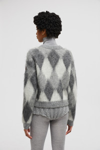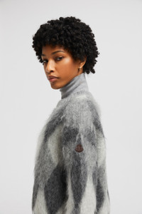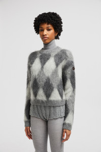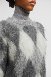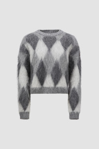 Emblematic of comfortable elegance, this sweater from the women's collection is knit from a plush wool and mohair blend. This wool and mohair blend sweater features a graphic diamond motif. Perfect for the city or the chalet, the mid-weight knit is featured in a classic crew neck shape. DETAILS - Crafted from a nylon, wool and mohair blend - Diamond jacquard motif - Fully-fashioned brushed stitch - Gauge 5 - Knit logo SIZE AND FIT - The model is wearing a size XS and is 180 cm tall - The model measures: bust 81 cm, waist 60 cm, hips 87 cm - Regular fit COMPOSITION BASE FABRIC: 49% Mohair, 34% Polyamide / Nylon, 17% Wool;LEATHER TAG: COW LEATHER Product code J20939C00012M1133F99 Made in Italy