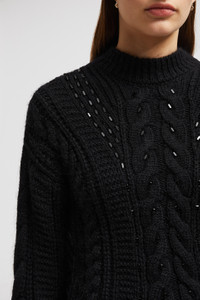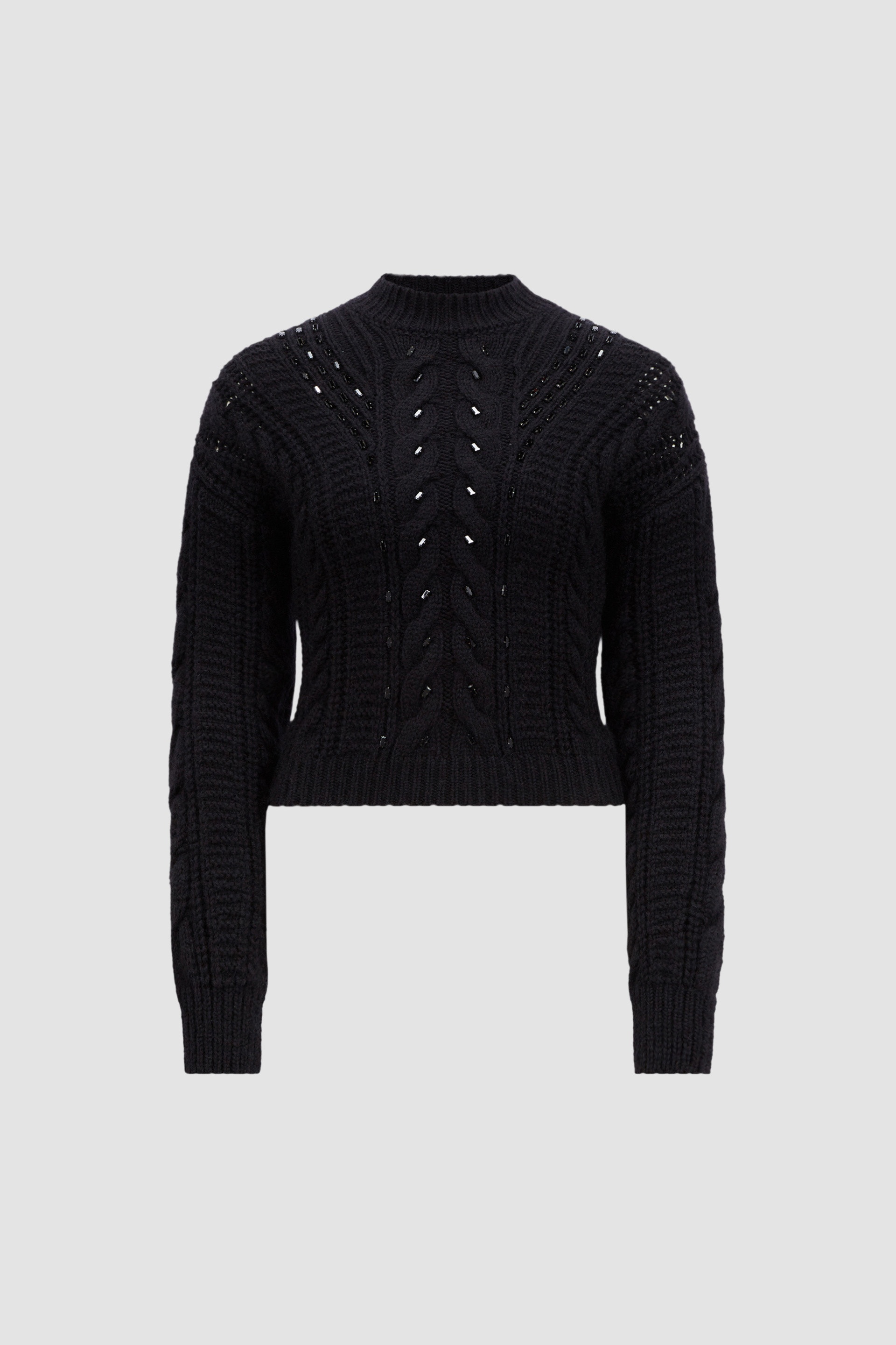 Crafted from a mohair and wool blend, this embroidered sweater offers warmth in the softest way possible. This sweater is crafted from a plush wool and mohair blend, further enhanced with delicate hand-embroidered crystals. From the city to the chalet, the heavy knit adds a luxurious touch to a cold weather wardrobe. DETAILS - Crafted from a mohair and wool blend - Cable rib knit - Gauge 3 - Turtleneck - Fully-fashioned brioche stitch back - Hand-embroidered crystals SIZE AND FIT - The model is wearing a size XS and is 177 cm tall - The model measures: bust 80 cm, waist 62 cm, hips 89 cm - Loose fit COMPOSITION BASE FABRIC: 89% Wool, 6% Mohair, 5% Polyamide / Nylon Product code J20939F00023M4910999 Made in Italy