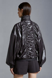 Refined and minimalistic, the Doride jacket is emblematic of the women's collection. Designed for modern women who place equal value on function and aesthetics, the Doride jacket is crafted from lightweight polyester with a glossy finish. Featured in a loose fit, the windbreaker has puffy sleeves and accent stitching along the front and back. - Crafted from recycled polyester - Recycled polyester lining - Adjustable collar - Zipper closure - Zipped welt pockets - Elastic cuffs and hem - Embossed silicone logo patch SIZE AND FIT - The model is wearing a size 0 and is 180 cm tall - The model measures: bust 78 cm, waist 58 cm, hips 88 cm - Loose fit COMPOSITION AND CARE EXTERIOR: 100% Polyester; LINING: 100% Polyester Hand wash; Do not bleach; Do not tumble dry; Ironing maximum temperature 110°C - without steam; Do not dry clean; Do not professionally wet clean; Flat dry in the shade; Wash separately; do not soak; Do not iron wrinkles; It is advisable to wash and iron the garment on reverse.; Do not twist or wring; PROTECT TRIMS WHILE WASHING Product code J10931A00027595ZJ999 Made in Italy