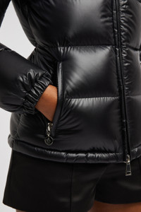 A feminine piece designed for city life, the Douro short down jacket is characterized by a silhouette-enhancing construction. A modern take on a classic puffer, the Douro down jacket presents tactical quilting designed to enhance the silhouette. The short puffer is crafted from recycled longue saison, a nylon fabric notable for providing supreme warmth while maintaining a light weight. The jacket is finished with a practical pull-out hood hidden in the stand collar. DETAILS - Crafted from recycled longue saison - Recycled longue saison lining - Down-filled - Pull-out hood - Zipper closure - Zipped welt pockets - Hem with drawstring fastening - Elastic cuffs SIZE AND FIT - The model is wearing a size 0 and is 178 cm tall - The model measures: bust 80 cm, waist 60 cm, hips 87 cm - Slim fit - Fitted shoulders and bust - Slim waist COMPOSITION EXTERIOR: 100% Polyamide / Nylon; LINING: 100% Polyamide / Nylon; HOOD LINING: 100% Polyamide / Nylon; PADDING: 90% Down, 10% Feather Product code J20931A00069595ZZ999 Made in Italy