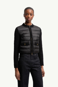 A modern mix of textures, this cardigan for women brings classic boudin-quilting together with a tactile knit finish. Seeing seasonal layering through a sophisticated lens, this cardigan pairs a quilted front and back with textured knit sleeves. The designs warm down-fill adds versatility, allowing it double as outerwear in milder weather. DETAILS - Crafted from nylon - Cotton and nylon blend collar, sleeves and trim - Gauge 3 - Down-filled front and back - Crew neck - Zipper closure - Patch pockets - Leather logo patch COMPOSITION BASE FABRIC: 100% Polyamide / Nylon; PADDING: 90% Down, 10% Feather; SLEEVES: 72% Cotton, 28% Polyamide / Nylon; 1 MATERIAL: 72% Cotton, 28% Polyamide / Nylon;LEATHER TAG: CALF Product code L10939B00029M9300999 Made in Moldova