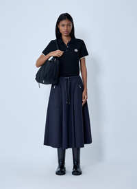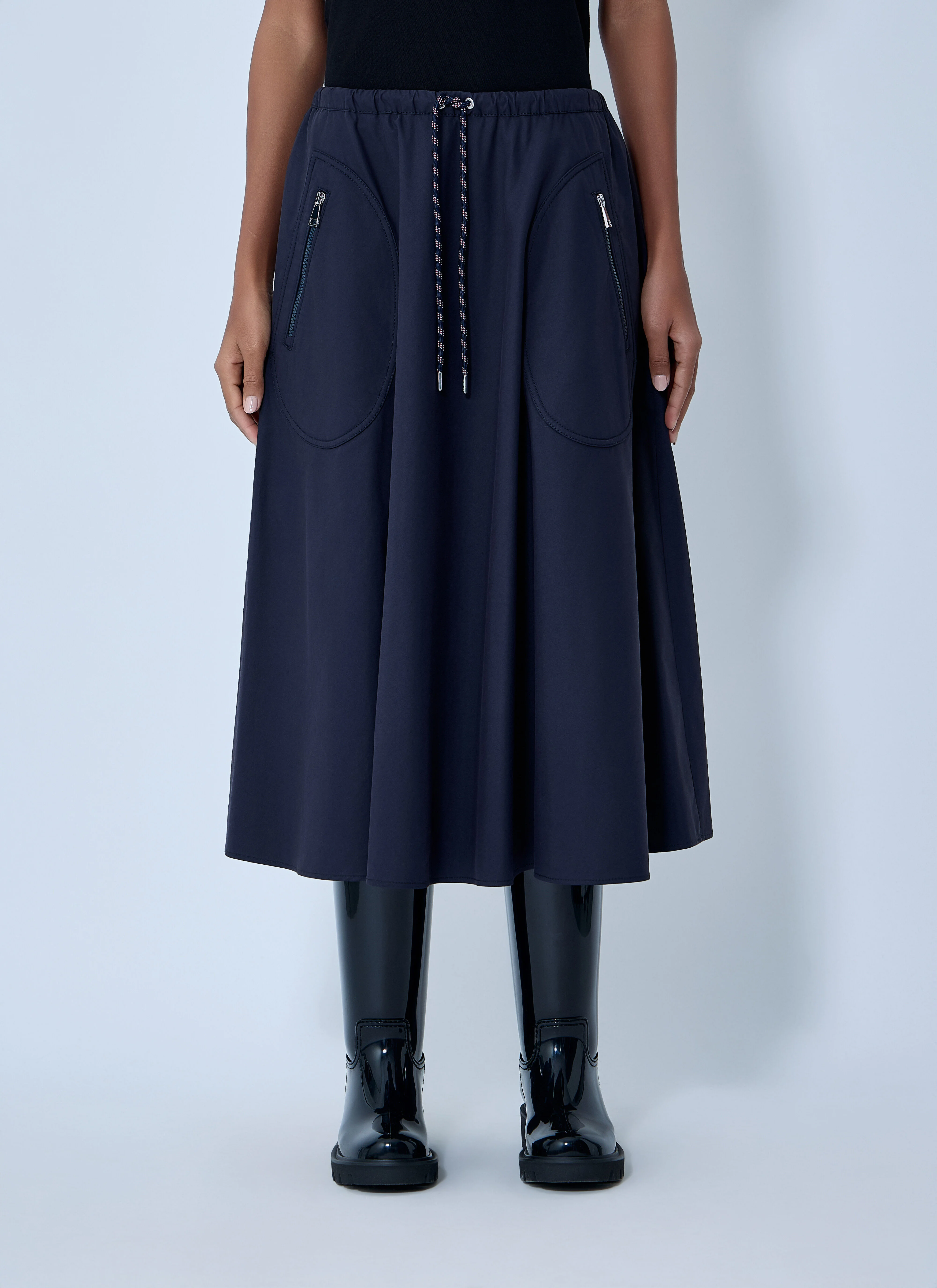 Mid-rise skirt with elasticated waistband and drawstring fastening. - Elasticated waistband - Drawstring fastening - Side zip pockets - 64% Cotton, 36% Technical Fabrication Blend. Dry clean - Color: Navy - Code: L1093 2D00013 54ARP 742