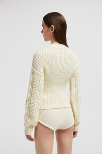 Crafted from a mohair and wool blend, this embroidered sweater offers warmth in the softest way possible. This sweater is crafted from a plush wool and mohair blend, further enhanced with delicate hand-embroidered crystals. From the city to the chalet, the heavy knit adds a luxurious touch to a cold weather wardrobe. DETAILS - Crafted from a mohair and wool blend - Cable rib knit - Gauge 3 - Turtleneck - Fully-fashioned brioche stitch back - Hand-embroidered crystals SIZE AND FIT - The model is wearing a size XS and is 179 cm tall - The model measures: bust 77 cm, waist 59 cm, hips 87 cm - Loose fit COMPOSITION BASE FABRIC: 89% Wool, 6% Mohair, 5% Polyamide / Nylon Product code J20939F00023M4910034 Made in Italy