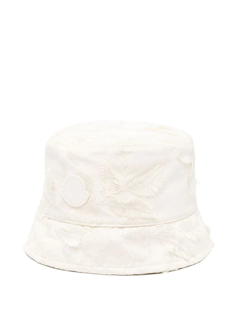 embroidered bucket hat Highlights - Light beige - Logo patch to the front - Flat crown - Dropped narrow brim Imported Composition Outer: Polyester 59%, Cotton 41% Lining: Cotton 100% SIZE & FIT Measurement BRIM 1.96 in(5 cm) CIRCUMFERENCE 21.65 in(55 cm)