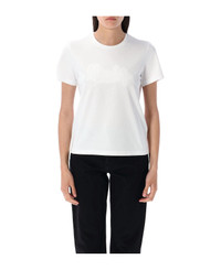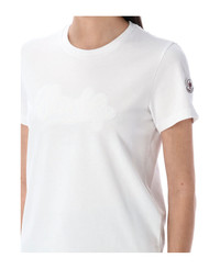 Embroidered Calligraphy Logo T-shirt By Moncler. Featuring: Cotton Jersey Crewneck Short Sleeves Embroidered Metallic Logo Terry Cloth Logo Patch Slim Fit Model Is 1,70 M And Wears Size S Composition: 100% cotton Made in: Turkey Color: WHITE Model number: 8C0001589AUG00A