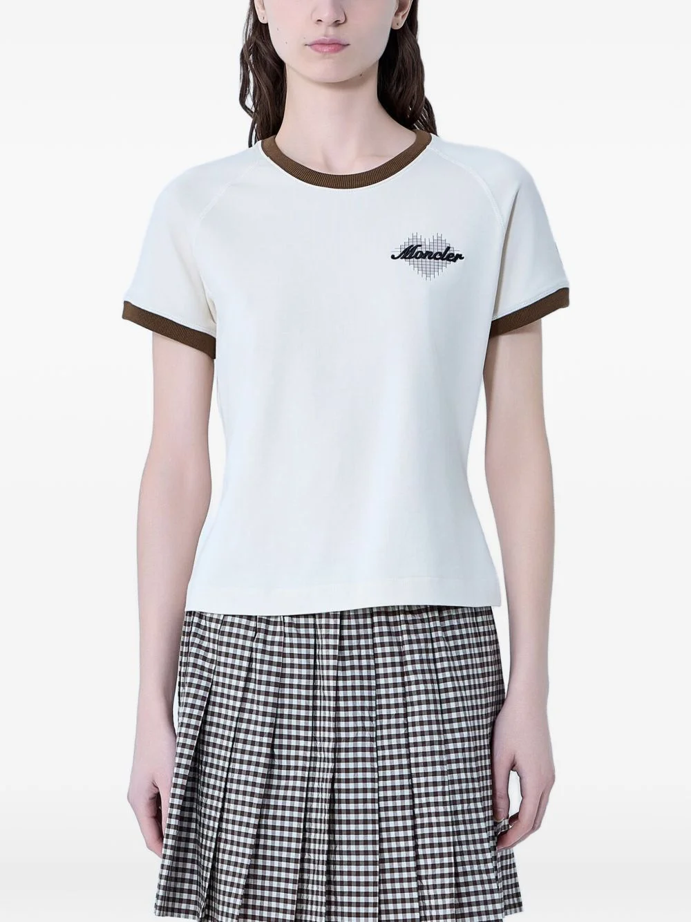 embroidered heart-motif T-shirt Highlights - Beige - Embroidered motif - Ribbed trims - Crewneck - Short sleeves Imported Composition Cotton 92%, Lycra 8% Washing instructions Machine Wash