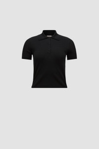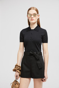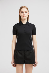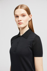 A timeless design from the women's collection, this cotton polo shirt is adorned with an embroidered logo. A wardrobe staple, this polo shirt is crafted from a cotton blend with a luxurious shiny finish. The short sleeve top is embroidered with a miniature logo, adding a subtle touch of brand DNA. DETAILS - Crafted from cotton and polyester blend - Interlock stitch - Gauge 18 - Collar - Short sleeves - Snap button closure - Embroidered logo SIZE AND FIT - The model is wearing a size XS and is 179 cm tall - The model measures: bust 76 cm, waist 60 cm, hips 88 cm - Slim fit COMPOSITION BASE FABRIC: 70% Cotton, 30% Polyester Product code K10939A00004M6440999 Made in Italy