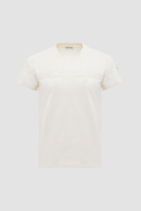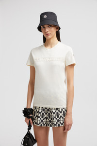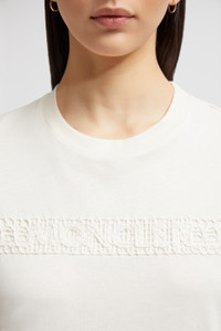 Elevating a casual classic, this short sleeve t-shirt for women is embellished with a subtle ton-sur-ton logo accent. Adding a delicate twist to a daily staple, this t-shirt features a lace-effect logo band. Easy to wear in any season, the crew neck is crafted from soft cotton jersey. DETAILS - Crafted from cotton jersey - Rib knit crew neck - Short sleeves - Embroidered logo band SIZE AND FIT - The model is wearing a size XS and is 181 cm tall - •Regular fit COMPOSITION BASE FABRIC: 100% Cotton; Ribs: 100% Cotton; Embroidery: 70% Cotton, 30% Polyamide / Nylon Product code K10938C0004489AUO034 Made in Italy