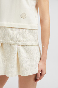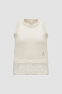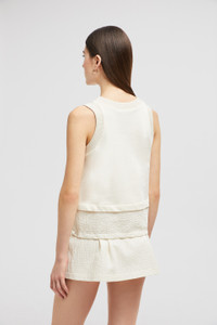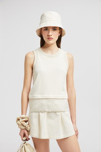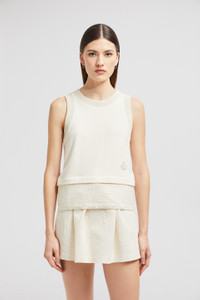 A breezy design for summer, this tank top from the women's collection features a feminine A-line silhouette. Creating a layered effect, this tank top features fleece at the top and embroidered fabric at the bottom. Creating volume and movement, the piece can be matched with a skirt in the same fabrics. DETAILS - Crafted from cotton and nylon blend fleece - Embroidered cotton and nylon bottom - Knit trim - Hem with drawstring fastening - Logo details SIZE AND FIT - The model is wearing a size XS and is 177 cm tall - Slim fit COMPOSITION BASE FABRIC: 100% Cotton; 1 MATERIAL: 85% Cotton, 15% Polyamide / Nylon; Ribs: 93% Cotton, 6% Polyamide / Nylon, 1% Elastane / Spandex; Embroidery: 88% Cotton, 12% Polyester Product code K10938P0000489AXF034 Made in Portugal