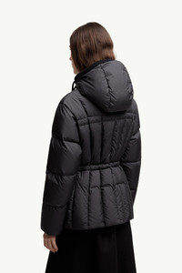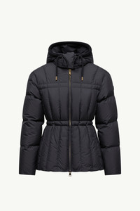Playing with texture and movement, the Estom short down jacket for women creates soft pleats through bold quilting. Infusing the classic down jacket with new energy, the Estom explores fresh shapes and textures. Boasting a light weight and elevated matte finish, the puffer focuses on softness through a tactile brushed finish. The short warmer is completed by a flared silhouette, emphasizing the waistline while adding movement. DETAILS - Crafted from polyester - Polyester lining - Down-filled - Adjustable hood with knit trim - Zipper closure - Zipped pockets - Waist and hem with drawstring fastening - Leather logo patch SIZE AND FIT - Regular fit - Cropped - Elasticized hemline - Length (collar to hem): 65 cm COMPOSITION EXTERIOR: 100% Polyester; Collar rib: 100% Virgin wool; LINING: 100% Polyester; HOOD LINING: 100% Polyester; PADDING: 90% Down, 10% Feather;LEATHER TAG: CALF Product code K20931A00172597YW999 Made in Romania