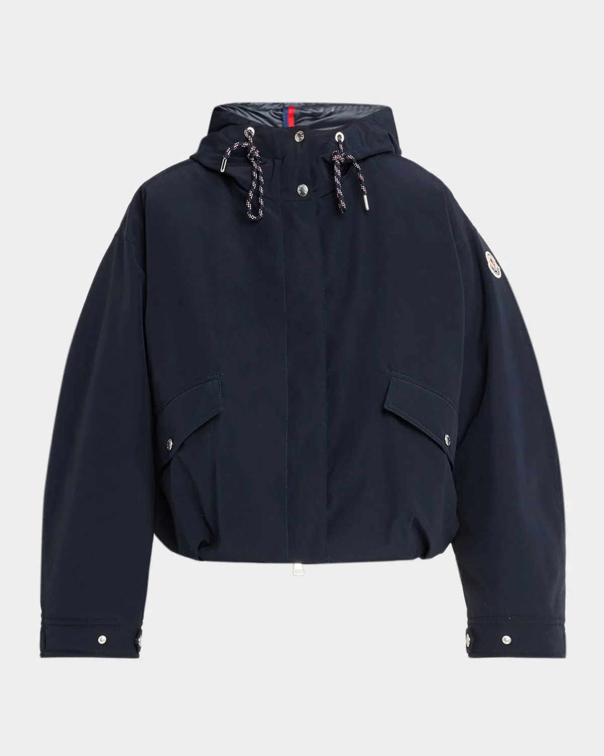 Crafted from water-repellent micro gabardine and insulated with premium down, the "Eucalyptus" jacket by Moncler features an adjustable drawstring hood and hem for a personalized fit with a modern touch. Signature embroidered logo patch on the left sleeve & nbsp; Dropped shoulders Long sleeves with adjustable cuffs & nbsp; Angled flap pockets with snap closures Oversized fit & nbsp; Two-way zip-front with snap-over placket & nbsp; Polyester/cotton Fill: Down/feather & nbsp; Lining: Polyester Hand wash Imported This product contains perfluoroalkyl and polyfluoroalkyl substances (PFAS). For more information, please visit the manufacturer's website.