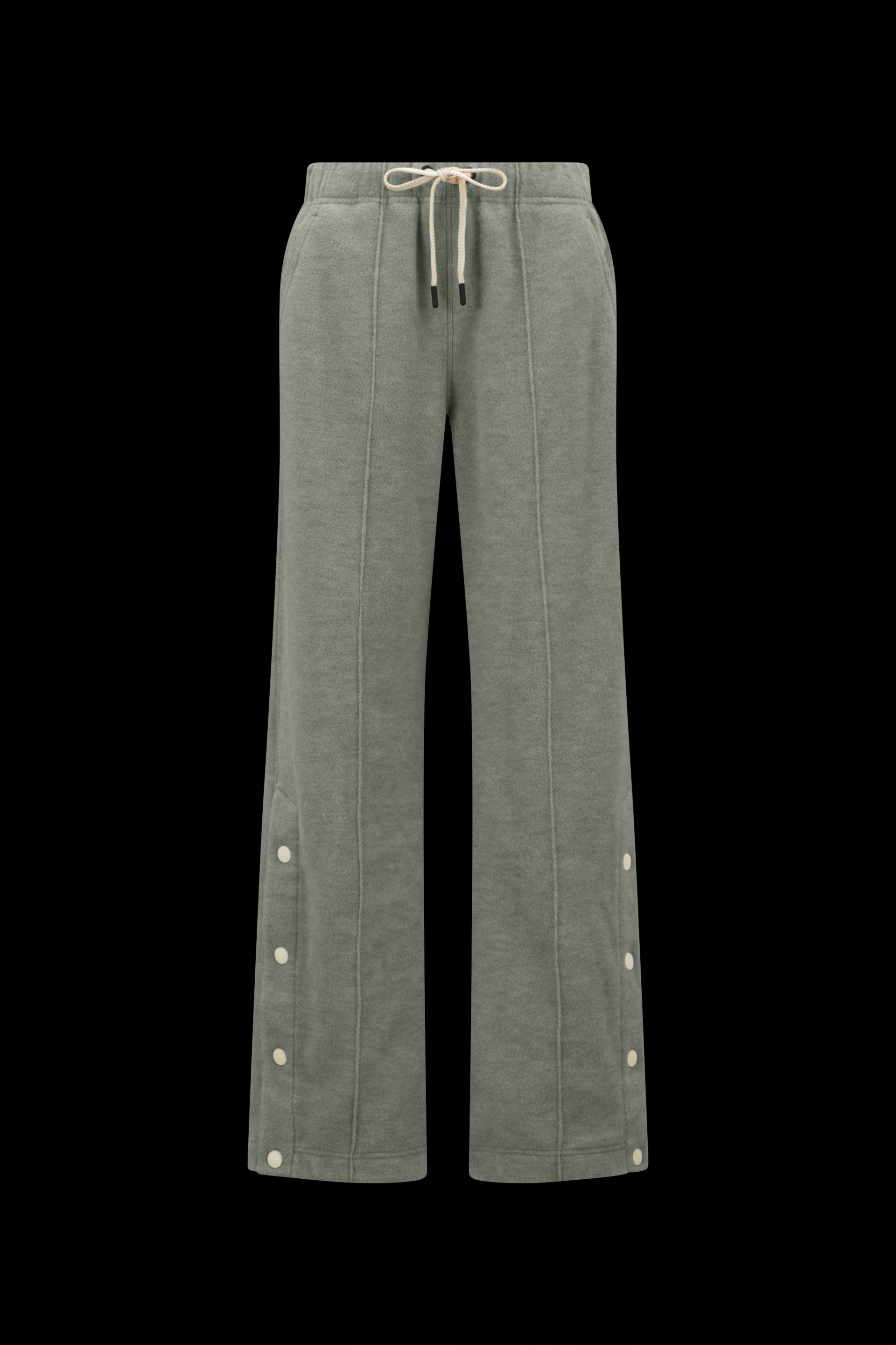 Part of the Moncler Grenoble collection for women, these fleece sweatpants provide comfort while lounging at home or on leisurely mountain strolls. Crafted from the softest cotton fleece, these sweatpants are enhanced with water-repellent nylon details. The plush style is embellished with snap button closure on leg, allowing you to play with the fit. - Crafted from technical mélange fleece and rainwear - Adjustable nylon belt - Elastic waistband - Slant pockets - Slits with snap button closure - Embroidered multicolor patch SIZE AND FIT - The model is wearing a size S and is 179 cm tall - The model measures: bust 80 cm, waist 60 cm, hips 88 cm COMPOSITION AND CARE BASE FABRIC: 60% Polyester, 40% Wool Wash max 30°C - Very mild process; Do not bleach; Do not tumble dry; Ironing maximum temperature 110°C - without steam; Dry cleaning in tetrachloroethene or with hydrocarbons - mild process; Professional wet cleaning - very mild process; Flat dry in the shade; Wash separately; Wash inside out; Iron inside out; PROTECT TRIMS WHILE WASHING Product code I20988H0000389A1Z819 Made in Turkey