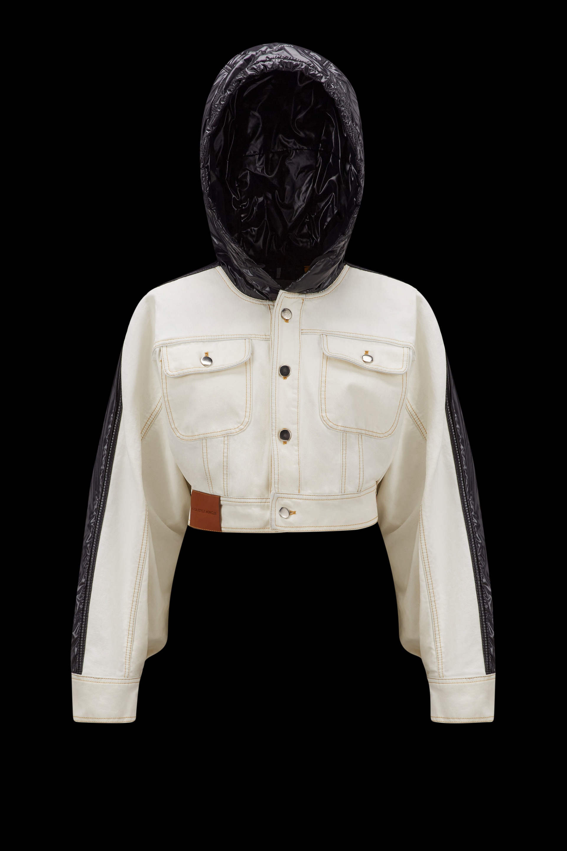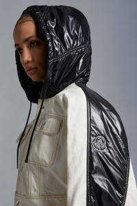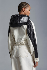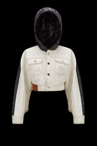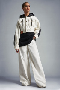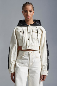 A bold look from the Moncler x Alicia Keys collection, the Flushing jacket is crafted in bleached denim and contrasting nylon laque. Perfectly encapsulating the mood of the collection the padded Flushing jean jacket effortlessly nods to the collection's strong '90s New York influences. Crafted from bleached denim, with juxtaposing nylon laque inserts, the Moncler Genius jacket is finished with a hood for versatility and a minimalist button closure. - Crafted from bleached denim - Nylon laqué inserts - Padded - Hood with nylon laqué lining - Button closure - Flap pockets - Nylon laqué logo patch - Leather label SIZE AND FIT - The model is wearing a size 0 and is 176 cm tall - The model measures: bust 82 cm, waist 63 cm, hips 88 cm - Loose fit COMPOSITION AND CARE EXTERIOR: 100% Cotton; LINING: 100% Polyamide / Nylon; PADDING: 70% Polyethylene, 30% Polyester; 1 MATERIAL: 100% Polyamide / Nylon;LEATHER TAG: COW Hand wash; Do not bleach; Do not tumble dry; Ironing maximum temperature 110°C - without steam; Do not dry clean; Do not professionally wet clean; Flat dry in the shade; Wash separately; Do not twist or wring; Do not iron decorations; do not soak; It is advisable to wash and iron the garment on reverse. Product code I109F1A00004M2953032 Made in Italy