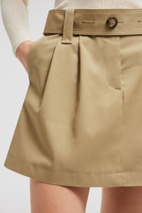 An easy essential for rising temperatures, this mini skirt for women is crafted from gabardine. A crisp style for warmer weather, this mini skirt is crafted from gabardine. The design features a detachable belt and darted front, creating a sophisticated shape. DETAILS - Crafted from cotton and polyester gabardine - Zipper and button closure - Detachable belt - Front pockets - Back patch pockets COMPOSITION BASE FABRIC: 65% Polyester, 35% Cotton Product code K10932D0001054A36235 Made in Romania