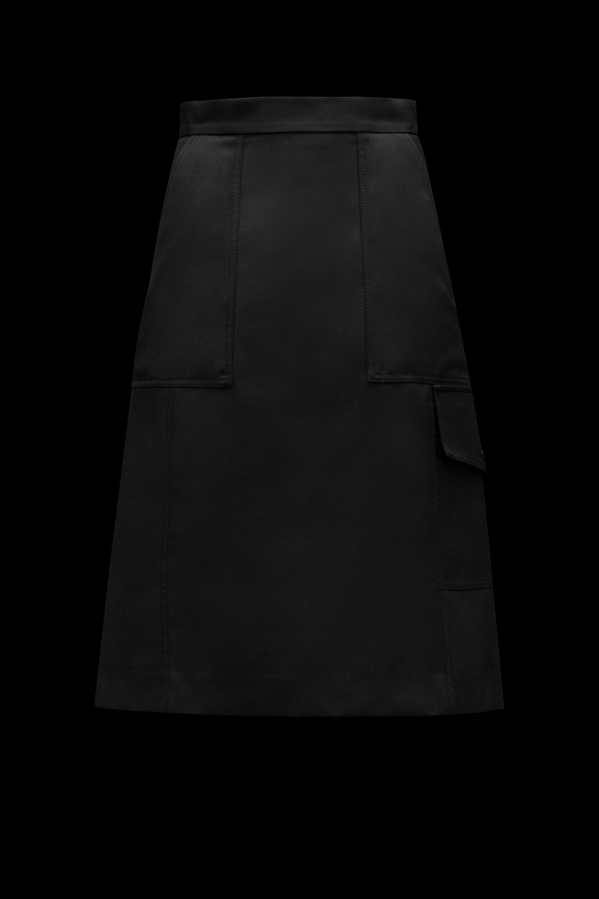 A Moncler midi skirt that combines workwear-inspired details and technical gabardine, guaranteeing an impeccable fit. This style for women showcases a slightly flared silhouette that offers the ability to move freely It is characterized by its side pockets and oversized cargo pocket on one side. - Skirt for women - Crafted in technical gabardine - Patch pockets on sides - Flap patch pocket on one side - Regular fit - Moncler logo on back SIZE AND FIT - The model is wearing a size 40 and is 180 cm tall COMPOSITION AND CARE BASE FABRIC: 90% Polyester, 10% Cotton; LINING 1: 100% Polyamide / Nylon Hand wash; Do not bleach; Do not tumble dry; Ironing maximum temperature 110°C - without steam; Dry cleaning in tetrachloroethene or with hydrocarbons - mild process; Do not professionally wet clean; Dry flat; Wash separately; Do not twist or wring; do not soak; It is advisable to wash and iron the garment on reverse. Product code G20932D0000454AWE999 Made in Hungary