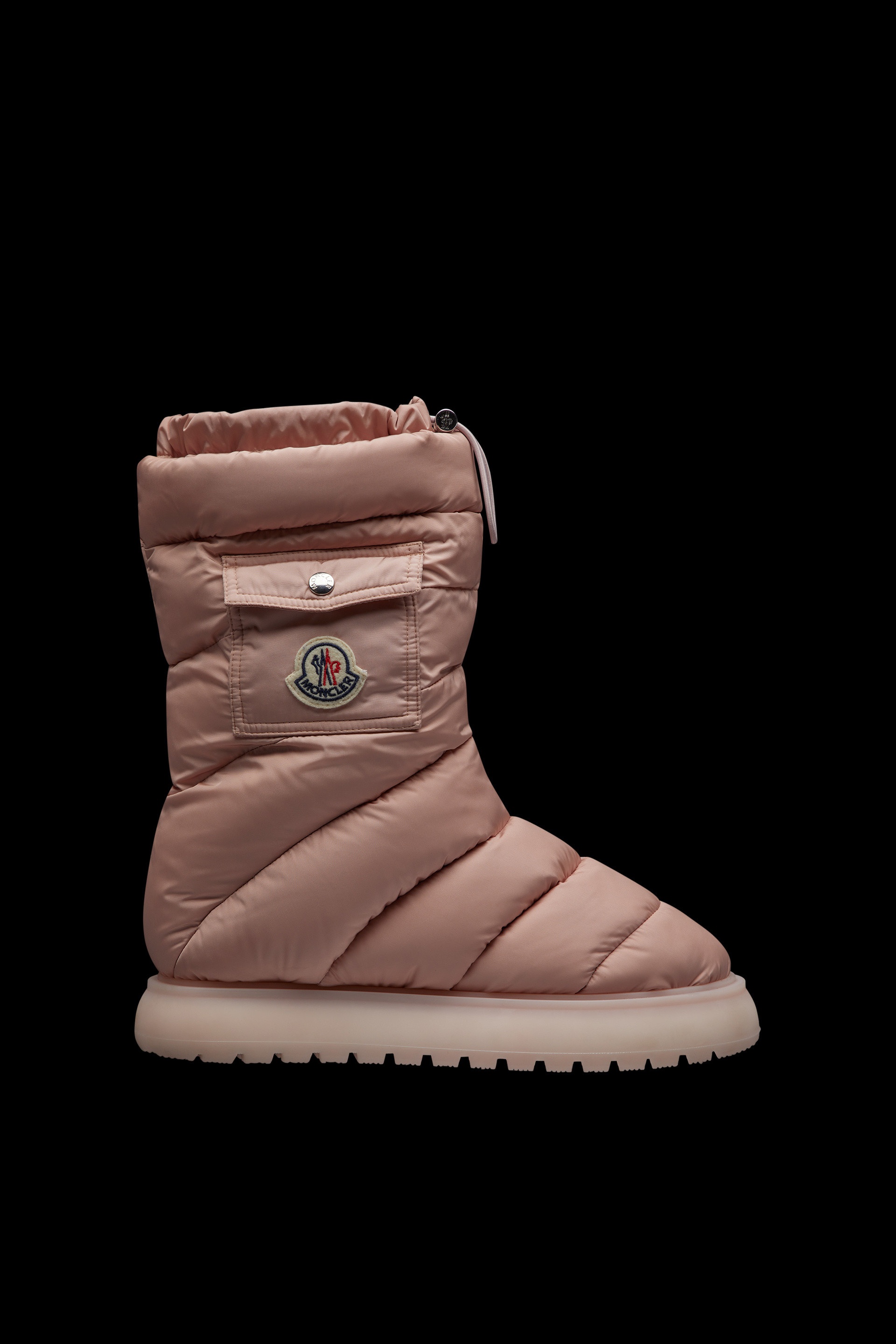 The nylon Gaia Pocket mid-calf boots for women are designed to brace the snow, on the slopes or the streets. An iconic Moncler design, the Gaia snow boots are crafted from matte nylon technique. The down-filled boots provide warmth and versatility - easily styled pulled up or folded down. The practical boots come with an anti-slip sole. In a nod to the iconic Moncler Maya, the boots are adorned with a patch pocket. - Nylon technique upper - Nylon technique insole - Down-filled - TPU sole with PU insert - Waterproof - Made in Italy - Sole height 3.5 cm COMPOSITION AND CARE UPPER: 100% Polyamide / Nylon; LINING: 50% Polyamide / Nylon, 50% Polyester; PADDING: 90% Down, 10% Feather; SOLE: 100% Elastodiene To protect your purchase over time, we recommend the shoes be cleaned using a brush with soft natural bristles or a slightly damp soft cloth. Before cleaning, make sure that the shoes are completely dry. After brushing, apply an appropriate amount of cleaning product to the leather and create small circular motions with a soft dry cloth. For suede shoes, please use a special rubber brush. We also recommend the use of a suitable water-repellent product before wearing the shoes in wet conditions. Dry away from direct heat. Finish the cleaning using a dry clean cloth. Store in the felt bag provided at the time of purchase. Product code I209B4H00070M366751L Made in Italy
