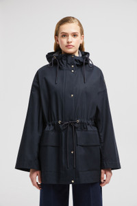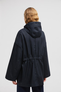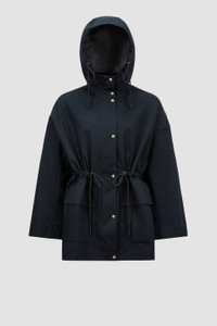 Ideal for milder weather, the Gaillon hooded parka from the women's collection is lightweight and breathable. Providing protection and sophistication, the Gaillon parka is a go-to piece in an everyday wardrobe. The jacket is crafted from smooth cotton with a protective yet light three-layer construction. Featuring an adjustable silhouette, a drawstring at the waistband creates a feminine shape. DETAILS - Crafted from 3-layer cotton - Adjustable hood - Zipper and snap button closure - Patch pockets - Waistband with drawstring closure - Leather logo patch SIZE AND FIT - Oversized fit - Elasticized waistline COMPOSITION BASE FABRIC: 80% Cotton, 20% Polyester; DETAILS PADDING: 100% Polyester;LEATHER TAG: COW LEATHER Product code K10931A00059598H9778 Made in Romania