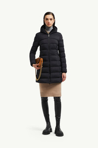 The Gie long down jacket for women is a graphic, practical style that combines a feminine design and performance materials. A timeless piece for winter in the metropolis or the mountain top, the Gie long down jacket is crafted from rainwear. The water-repellent down coat boasts a feminine flared shape that layers well over daytime and evening looks. DETAILS - Crafted from rainwear - Rainwear lining - Down-filled - Pull-out hood - Zipper closure - Zipped pockets - Logo SIZE AND FIT - Regular fit - Regular shoulders - Fitted waist - Length (collar to hem): 81 cm COMPOSITION EXTERIOR: 100% Polyamide / Nylon; LINING: 100% Polyamide / Nylon; HOOD LINING: 100% Polyamide / Nylon; PADDING: 90% Down, 10% Feather Product code K20931C00037539YH999 Made in Moldova