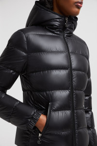A classic Moncler design for women, the Gles hooded down jacket is crafted from longue saison. Unmistakably Moncler, the Gles down jacket is characterized by classic boudin quilting and an iconic patch pocket on the sleeve. The hooded puffer is crafted from longue saison, a nylon fabric notable for providing warmth while remaining lightweight. DETAILS - Crafted from longue saison - Longue saison lining - Down-filled - Hood - Zipper closure - Zipped pockets - Chest pocket with snap button closure - Adjustable cuffs SIZE AND FIT - The model is wearing a size 0 and is 178 cm tall - The model measures: bust 80 cm, waist 60 cm, hips 87 cm - Slim fit COMPOSITION EXTERIOR: 100% Polyamide / Nylon; LINING: 100% Polyamide / Nylon; HOOD LINING: 100% Polyamide / Nylon; PADDING: 90% Down, 10% Feather; DETAILS PADDING: 100% Polyester Product code K10931A00074595ZZ999 Made in Moldova