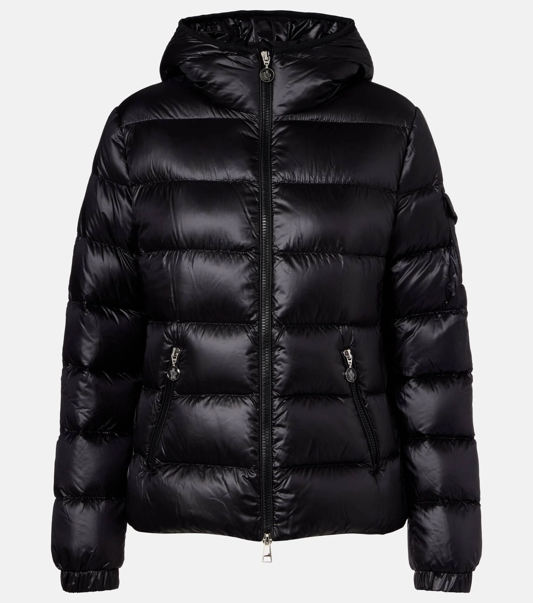 The Moncler Longue Saison achieves an unparalleled lightness, equally suited for cold-weather layering and transeasonal wear. The signature fabric is used to create the Glesse down jacket, a hooded style complete with a zipper fastening and adjustable cuffs. Product Details - Material: 100% polyamide - Care instructions: hand wash - Made in Moldova - Color: black - Designer color name: 999 - Lining: 100% polyamide - Filling: 100% polyester - Filling II: 90% down, 10% feathers - Contains non-textile parts of animal origin - Closure: two-way zipped front - Cuff: elasticated - Pockets: zipped pockets - Item number: P01127399 Size & Fit - Fits small to size - we recommend trying one size larger - Cinched waist - Non-stretchy fabric - Falls to the hip - The model seen in the picture is 178cm-5'10" and wearing a size 1