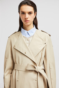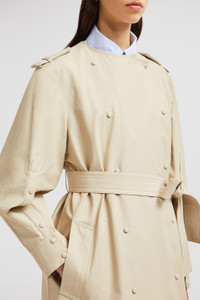 From a long padded jacket to trench or vest, the Gourdon is a sophisticated 3-in-1 design for women. Effortlessly adapting to the weather or the occasion, the Gourdon jacket can be worn in three different ways. The piece pairs a long trench with a detachable padded vest on the inside. Blending the protection of technical fabric with the soft feel of natural ones, both layers are made from a cotton and nylon blend. The versatile piece is completed by a detachable belt and adaptable sleeves. DETAILS - Crafted from a technical cotton and nylon blend - Padded detachable inner vest - Sleeves with snap button closure - Snap button closure - Open pockets - Detachable belt - Leather logo patch SIZE AND FIT - The model is wearing a size 0 and is 180 cm tall - The model measures: bust 78 cm, waist 58 cm, hips 88 cm - Loose fit - Belted COMPOSITION PART A: BASE FABRIC: 64% Cotton, 36% Polyamide / Nylon;LEATHER TAG: COW LEATHER; PART B: EXTERIOR: 100% Polyamide / Nylon; LINING: 100% Polyamide / Nylon; PADDING: 100% Polyester;LEATHER TAG: COW LEATHER Product code K10931C0000554ARP268 Made in Romania
