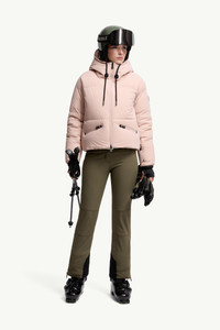 The Allesaz short down jacket for women delivers waterproof protection and unrestricted movement on the slopes. Designed for alpine skiing, the Allesaz down jacket for women is brimming with innovative details. Crafted from high-performance stretch fabrics, the puffer jacket is designed to ensure unrestricted movement during mountain activities and in all weather conditions. DETAILS - Designed for skiing and snowboarding - Crafted from 2L four-way stretch technical poplin - Stretch nylon lining - Down-filled - Heat-sealed seams - Adjustable hood with 2L four-way stretch technical poplin lining - YKK® Aquaguard highly water-resistant zipper closure - Pockets with YKK® Aquaguard highly water-resistant zipper closure - Inner media pocket with YKK® Aquaguard highly water-resistant zipper closure - Inner stretch mesh pocket - Ski pass pocket - Powder skirt - RECCO® reflector - Stretch jersey wrist gaiters - Hem with drawstring fastening - Logo details - Silicone logo patch SIZE AND FIT - The model is wearing a size 1 and is 178 cm tall - Loose fit - Length (collar to hem): 60 cm COMPOSITION BASE FABRIC: 84% Polyamide / Nylon, 16% Elastane / Spandex; LINING: 85% Polyamide / Nylon, 15% Elastane / Spandex; PADDING: 90% Down, 10% Feather; 1 MATERIAL: 83% Polyamide / Nylon, 17% Elastane / Spandex Product code K20981A00056597S3511 Made in Romania