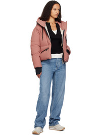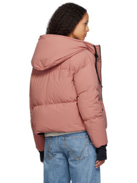 DIST-certified down-filled and quilted stretch nylon taffeta jacket. · Drawstring at hood · Stand collar · Two-way zip closure · Zip pockets · Concealed bungee-style drawstring at hem · Rubberized logo patch and zip pocket at sleeve · Thumbhole at inset jersey cuffs · Zip pocket at interior · Snow skirt with elasticized hem at interior · Full satin lining Supplier color: Phard Fill: 90% goose down, 10% goose feather. Body: 84% polyamide, 16% elastane. Trim: 83% polyamide, 17% elastane. Lining 1: 85% polyamide, 15% elastane. Lining 2: 84% polyamide, 16% elastane. Made in Romania 242826F061030
