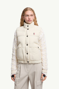 Crafted from technical poplin, the Moncler Grenoble Baise down vest for women is a sleek winter warmer. Perfect for relaxing in the mountains, the Baise down vest is made from technical poplin. The warmer is further enhanced with water-repellent lining. Keeping mountain essentials protected, the puffer vest is completed by pockets with water-resistant zippers. DETAILS - Crafted from technical poplin - Rainwear lining - Down-filled - Snap button closure - Pockets with snap button closure - Inner pockets with YKK® AquaGuard® Highly Water-Resistant zipper closure SIZE AND FIT - The model is wearing a size 1 and is 178 cm tall - Regular fit - Length (collar to hem): 56 cm COMPOSITION BASE FABRIC: 65% Polyamide / Nylon, 35% Polyester; LINING: 100% Polyamide / Nylon; PADDING: 90% Down, 10% Feather; DETAILS PADDING: 100% Polyester Product code K20981A00042597UI20N Made in Romania