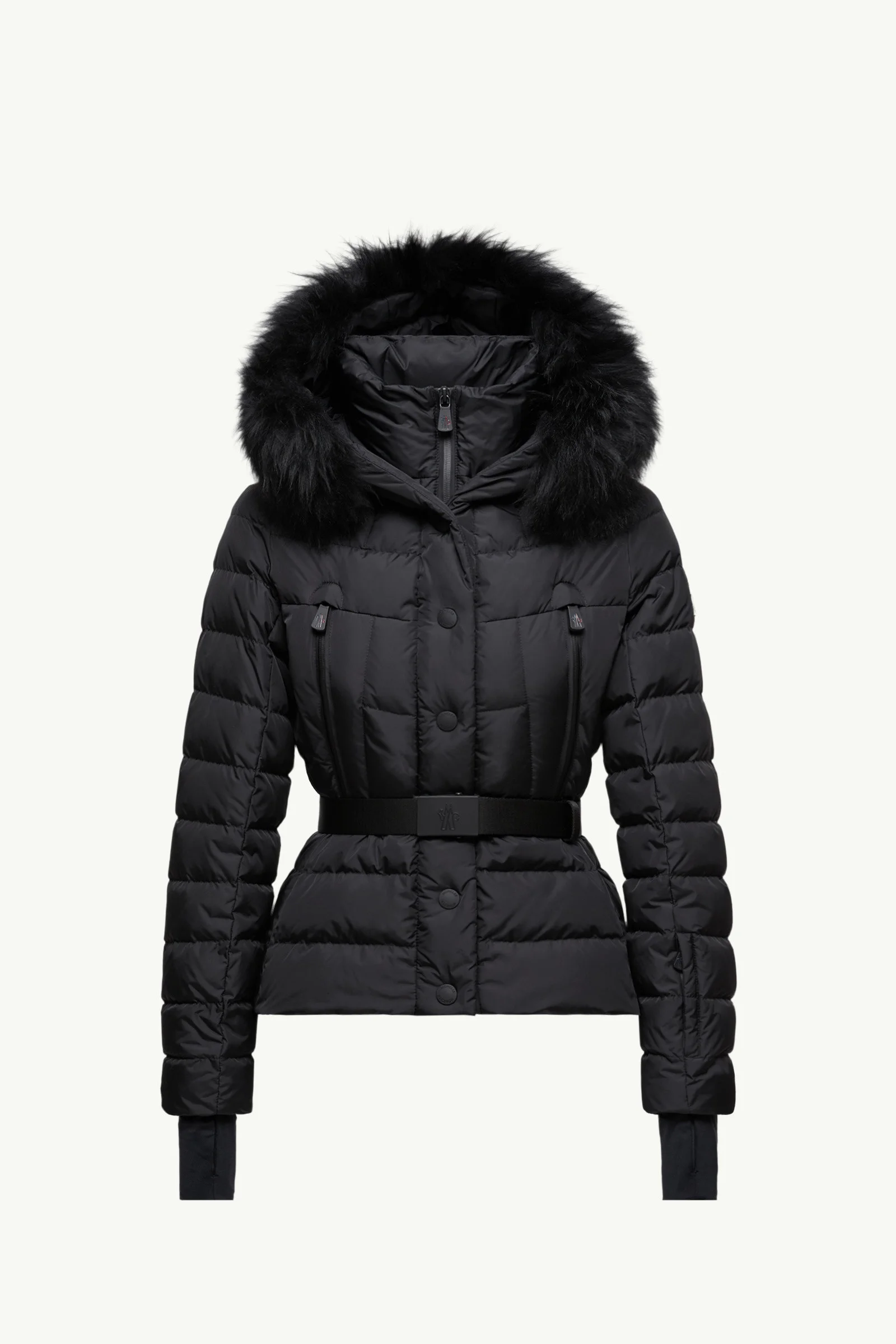 On the slopes or relaxing apres ski, the Beverley down jacket adds the Moncler Grenoble stamp of style, adorned with a long-haired sheepskin trim. Designed for resort skiing and outdoor activities, the Beverley down jacket is crafted from tech nylon. Providing breathable protection, the puffer features a powder skirt that keeps the wind at bay, while water-resistant zippers make sure you are warm. A detachable long-haired sheepskin trim on the hood adds an elegant finishing touch. DETAILS - Designed for skiing and snowboarding - Crafted from 2L tech nylon - Polyester lining - Down-filled - Adjustable hood with a detachable a sheepskin trim - Windproof double front flap with snap button closure - YKK® AquaGuard® highly water-resistant zipper closure - Detachable and adjustable belt - Pockets with YKK® AquaGuard®highly water-resistant zipper closure - Inner media pocket with YKK® AquaGuard®highly water-resistant zipper closure - Ski pass pocket with YKK® AquaGuard®highly water-resistant zipper closure - Powder skirt - Stretch jersey wrist gaiters SIZE AND FIT - The model is wearing a size 1 and is 178 cm tall - Slim fit - Length (collar to hem): 60 cm COMPOSITION BASE FABRIC: 100% Polyamide / Nylon; LINING: 100% Polyester; HOOD LINING: 100% Polyamide / Nylon; COLLAR: 100% Polyamide / Nylon; PADDING: 90% Down, 10% Feather; DETAILS PADDING: 100% Polyester; 1 MATERIAL: 83% Polyamide / Nylon, 17% Elastane / Spandex;Leather with hair 1: LAMB; Origin: China; Dyed Product code K20981A000665399E999 Made in Romania