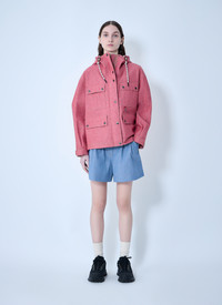 Hooded jacket in wool-blend construction. - Front button fastening - Flap front pockets - Drawstring hood - 52% Polyester 48% Cotton - Color: Pink - Code: L1098 1B00001 599BN 55A