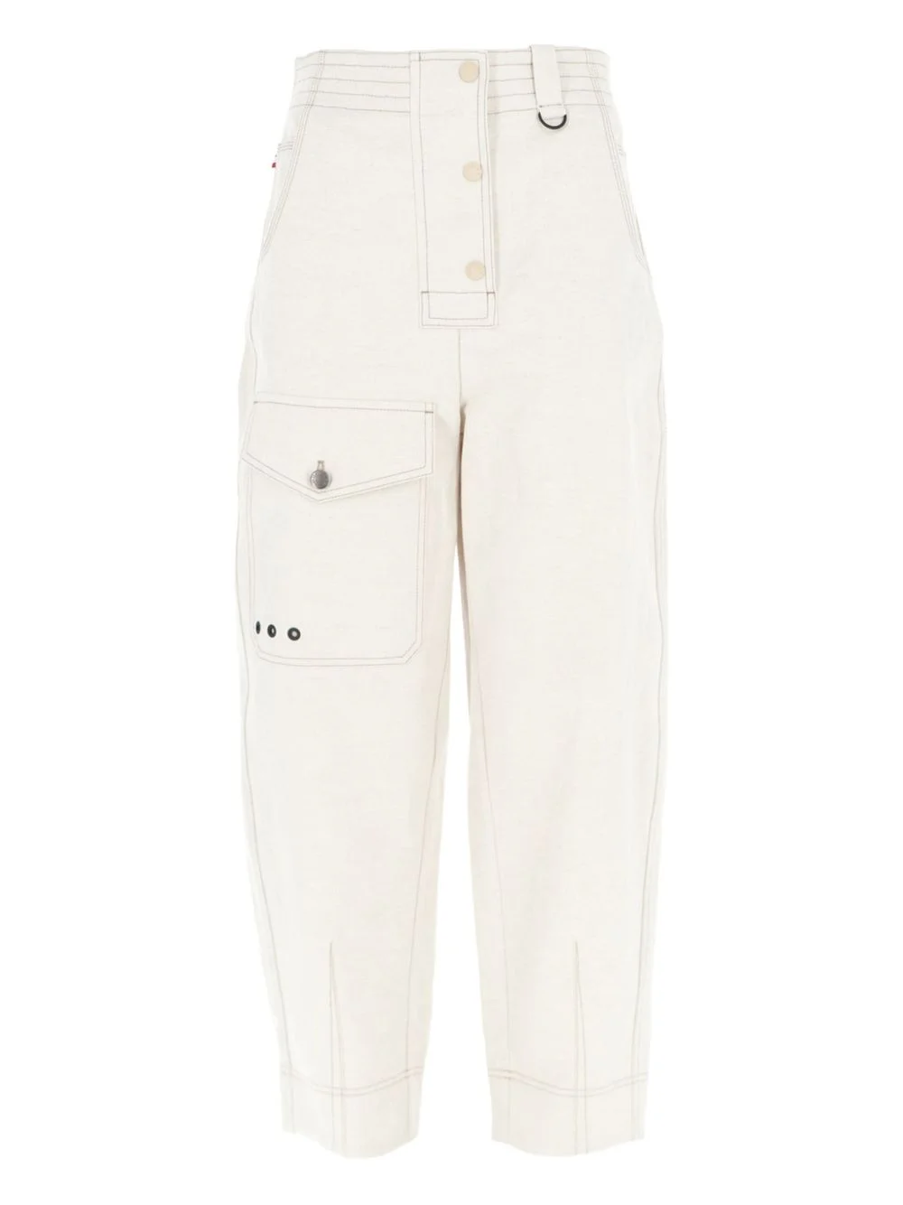 button-fastening trousers Highlights - White - Button fastening - Belt loops - Patch pocket - Topstitching Imported Composition Cotton 52%, Linen/Flax 48% Washing instructions Read Manufacturer Guidelines