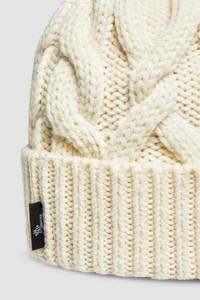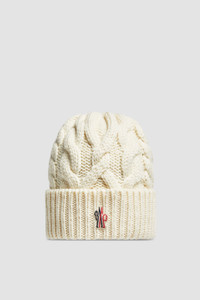 An added layer of protection on the slopes, this cable knit wool beanie for women is a mountain essential. Taking you from the slopes to the city streets, this wool beanie is designed with warmth in mind. The heavy knit is part of the Moncler Grenoble collection. DETAILS - Crafted from ultra-fine wool - Stockinette stitch - Gauge 3 - Nylon laque tricolor logo COMPOSITION BASE FABRIC: 100% Virgin wool Product code J20983B00003M1172034 Made in Italy