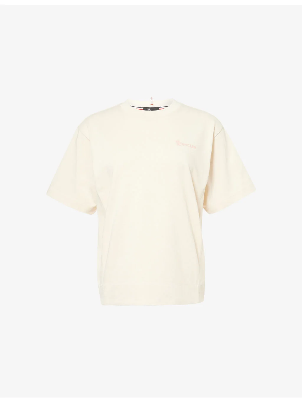 PRODUCT DETAILS - Moncler Grenoble cotton-jersey T-shirt - 100% cotton - Slips on - Relaxed fit, crewneck, ribbed trim at neck, short sleeves, brand embroidered applique at sleeve, brand text print at chest, exposed seams - Machine wash cold - True to size - Model is 5ft 10in/1.78m and wears a size small - Lightweight, slight stretch Ref: R04423569