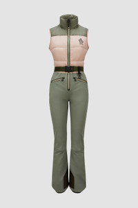 Designed for heightened performance on the slopes, this Moncler Grenoble ski suit for women is an alpine essential. A high-altitude design, this ski suit is crafted from water-repellent poplin that stretches four ways, giving you maximum freedom of movement. The body is padded for warmth while water-resistant zippers and powder cuffs keep the ski at bay. The perfect fusion of function and style, a detachable belt adds a carabiner to keep gloves on hand and also creates a feminine silhouette. A soft fleece lining completes the design with added softness. DETAILS - Designed for alpine skiing - Crafted from 3L 4-way stretch technical poplin - Stretch technical polyester lining - Down-filled body - YKK® AquaGuard® highly water-resistant zipper closure - Pockets with YKK® AquaGuard® highly water-resistant zipper closure - Adjustable and detachable belt with glove carabiner - Cuffs with YKK® AquaGuard® highly water-resistant zipper closure - Powder cuffs - Skicut hem protection - Bonded logo details SIZE AND FIT - The model is wearing a size S and is 177 cm tall - The model measures: bust 74 cm, waist 61 cm, hips 92 cm COMPOSITION BASE FABRIC: 68% Polyester, 24% Polyamide / Nylon, 8% Elastane / Spandex; LINING: 92% Polyester, 8% Elastane / Spandex; BOTTOM LINING : 100% Polyamide / Nylon; BODY: 100% Polyamide / Nylon; PADDING: 90% Down, 10% Feather; DETAILS PADDING: 100% Polyester; 1 MATERIAL: 100% Polyamide / Nylon Product code J20982G00006597OCP85 Made in Romania