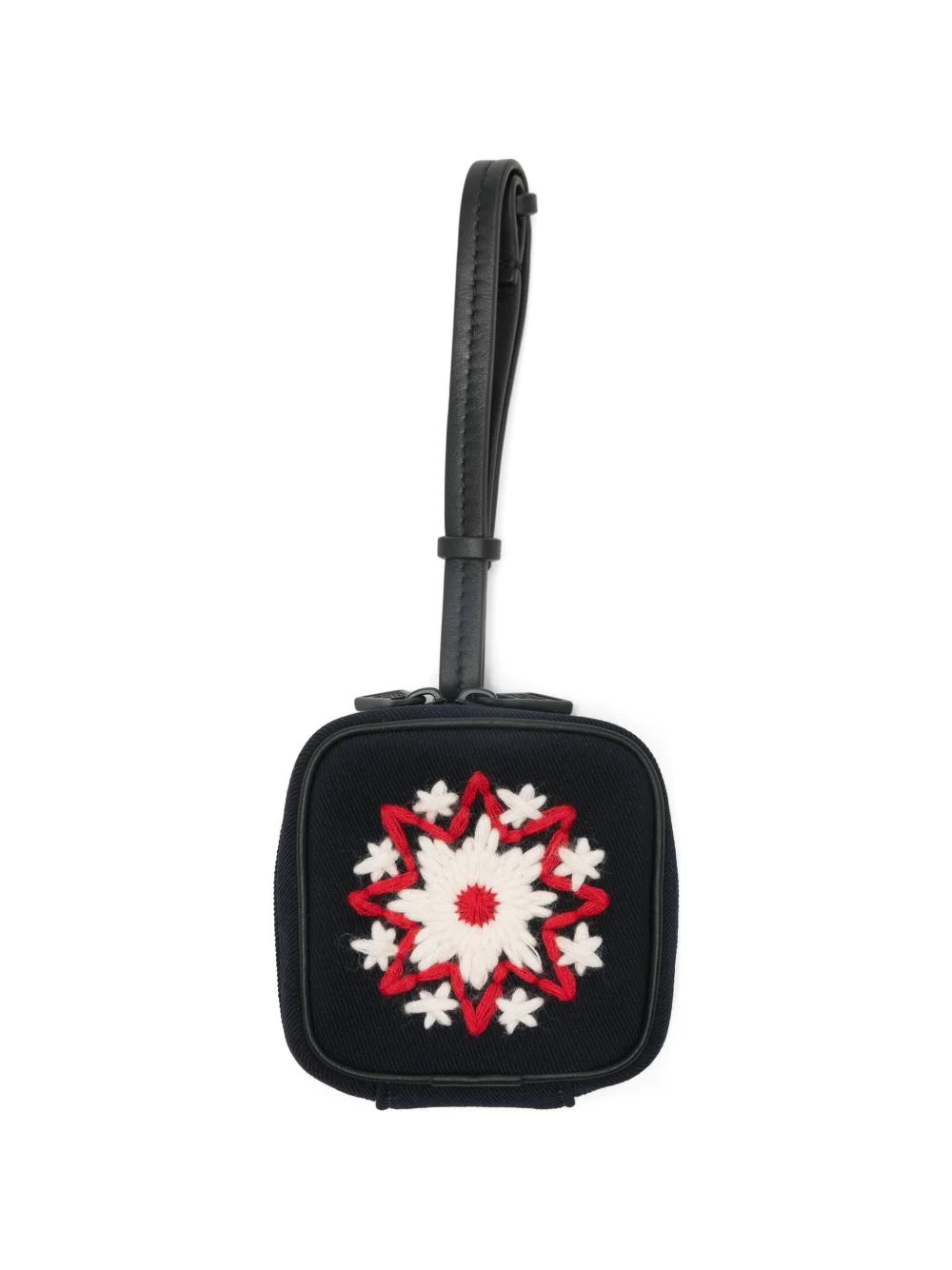embroidered zip wallet Highlights - Navy blue - Embroidered motif - Logo detail - Zip fastening - Top handle - Square shape Made in Italy Composition Outer: Polyamide 71%, Nylon 23%, Rayon 6% Lining: Cotton 95%, Acrylic 5% SIZE & FIT Measurement DEPTH 0.78 in(2 cm) HEIGHT 2.95 in(7.5 cm) WIDTH 2.95 in(7.5 cm)